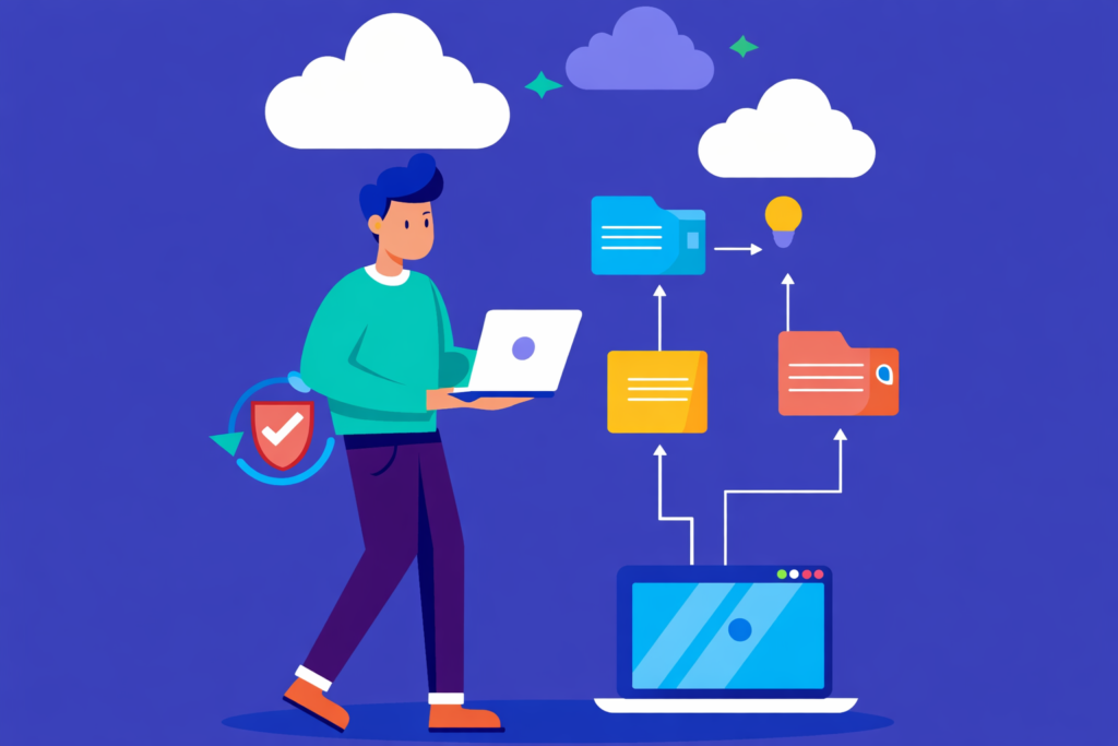 These visuals help users understand file management, media playback, and browser-based cloud storage for PC without confusion.